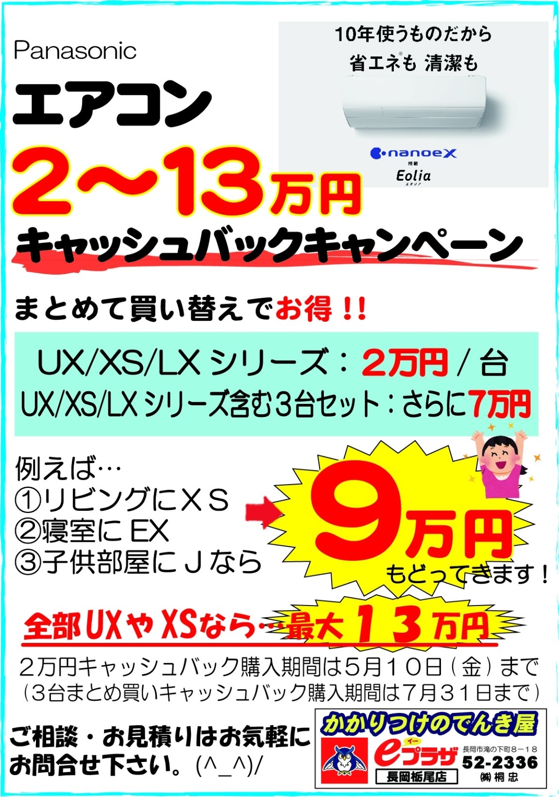 【エアコンのキャッシュバックキャンペーン】が始まりました!(^^)/