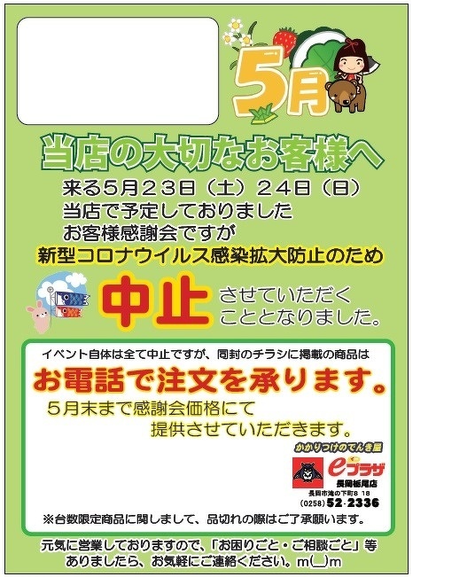感謝会は、中止させて頂きましたが、毎日元気に通常営業をさせて頂いております。